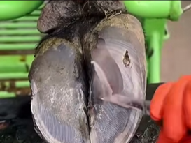 ABSCESS BURST OPEN DEEP HOLE cows hoof is PEELING OFF! Cow 9002 Read More