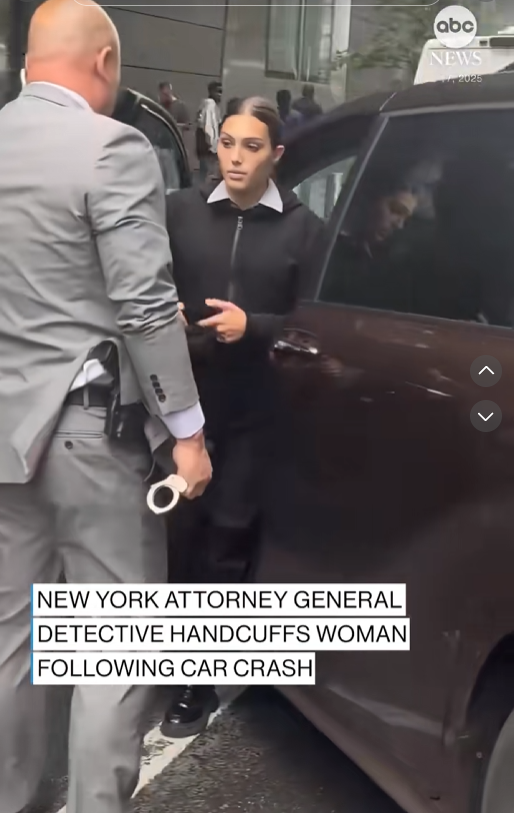A woman was led out of her vehicle and handcuffed in Manhattan, after she clipped the car of a detective working for the New York State Attorney General